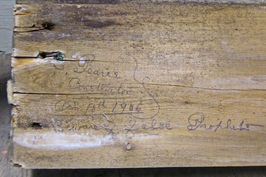 Interesting inscription written on outside top of one of the vertical boards under the corrugated iron.