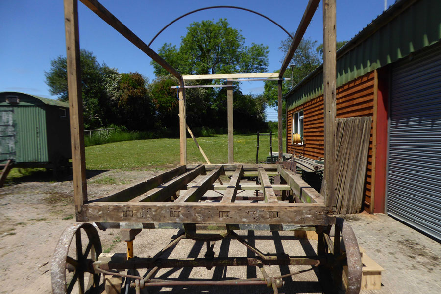 The frame work was 4 corner posts tennoned into the chassis with a top plate joining the 4 corner posts with mortices and tennons. This was held rigid by 19mm tongue and groove boards nailed to the outside